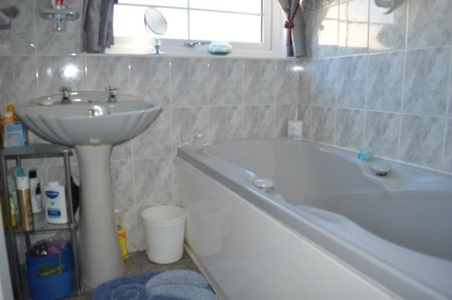 BATHROOM Obscure glazed window to the rear. Fully tiled walls and vinyl flooring. Artex ceiling. Wired for centre light. Upright aluminium flooring. Wash hand basin, panel bath with a shower over.