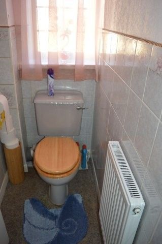 W/C Obscure glazed window. Plain plastered ceiling. Wired for centre light. Vinyl flooring. Half tiled walls. Low level w/c.