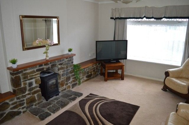 LIVING ROOM 5.15m x 3.80m. Coved and artex ceiling. Wired for centre light. Carpet cover. Upvc window to the front. Double panel radiator to one wall with an individual thermostat. Various power points. Further door leads to the kitchen area. Stone fireplace with a wooden surround.