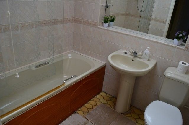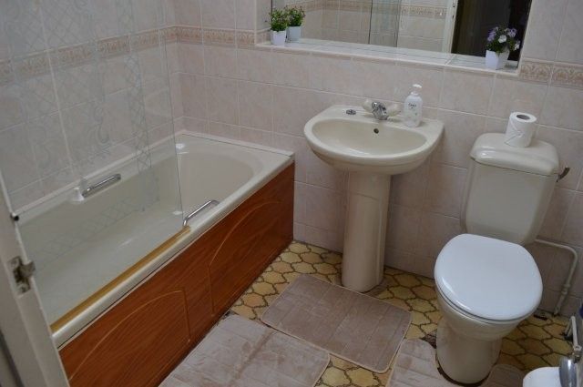 BATHROOM Modern bathroom comprising of a panel bath with a shower over, w/c and wash hand basin. Single panel radiator. Wired for lighting. Fully tiled walls. Laminate flooring.