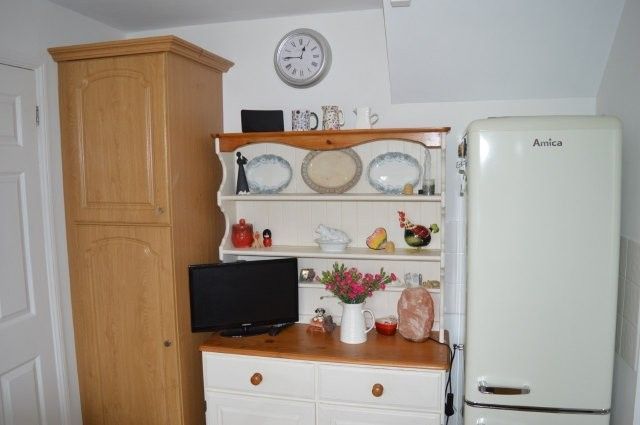 KITCHEN 3.30m x 2.36m Vinyl flooring. Fitted with matching base and wall units and work surfaces over. Splash back tiled surround. Power points. One and a half bowl sink unit. Window overlooking the rear with a roller blind. Plain plastered ceiling. Wired for centre light. Zanussi electric hob and oven with an extractor fan.