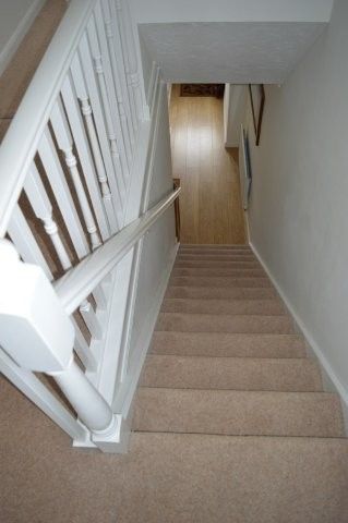 Carpeted staircase leads to the first floor:
