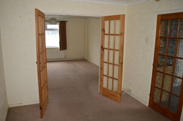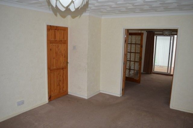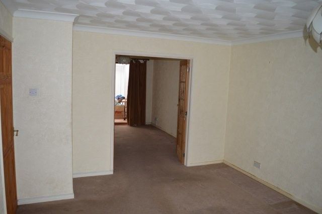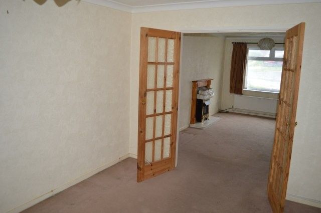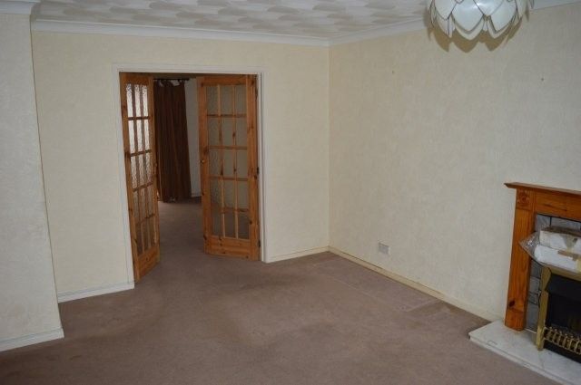 LIVING ROOM 4.75m x 3.55m Upvc window with blind to the front with a double panel radiator beneath. Coved and artex ceiling. Wired for centre light. Power points. Carpet cover. Marble grate with stone surround. Wooden obscure glazed double doors lead into the dining room.