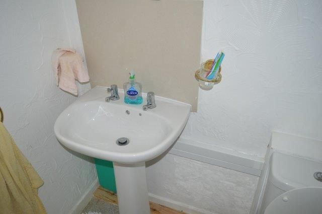 CLOAKROOM/GROUND FLOOR W/C Suite comprising a wash hand basin and w/c. Double panel radiator to one wall. Obscure glazed window with roller blind overlooking the rear. Artex ceiling wired for centre light. Medicine cabinet. Vinyl flooring as the kitchen.
