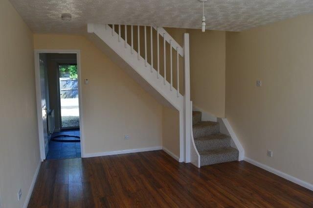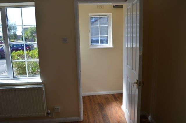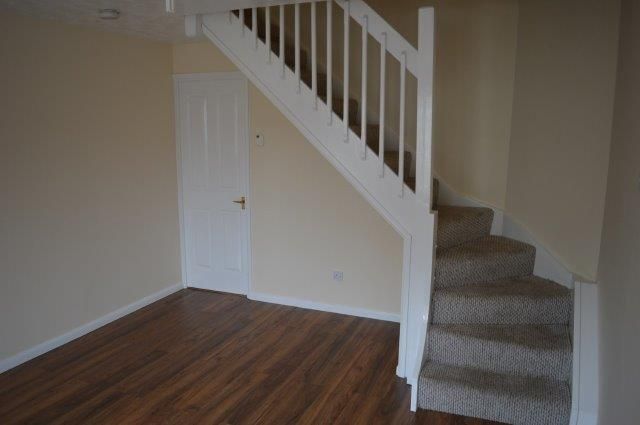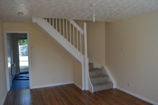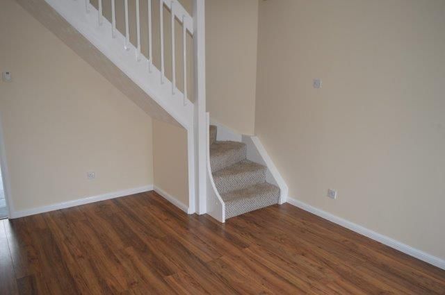LOUNGE 4.72 x 3.63m Window overlooking the front with double panel radiator beneath. Wired for ceiling light, six power points, smoke detector and TV point. Laminate flooring. Staircase leading to first floor. Door to: