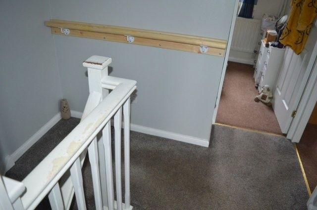 RECEPTION HALL Door leading to the lounge. Cloaks rack. Carpet cover. Radiator. Wired for ceiling light. Stairs which lead to the first floor.