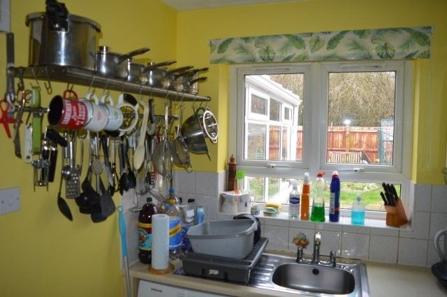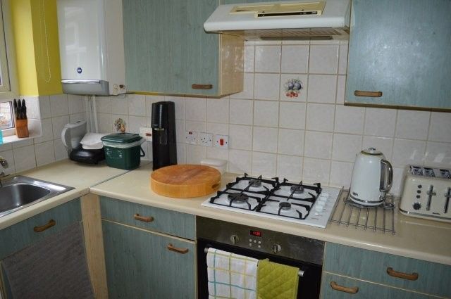 KITCHEN 3.05m x 1.4m Fitted with a range of base and wall units and matching work surfaces over. Splashback tiling. Plumbing for appliances. Stainless steel sink and drainer with mixer tap. Gas oven, hob and extractor hood. Vinyl flooring. Wired for lighting. Power points. Upvc window with roller blind overlooking the rear. Location of the Baxi boiler that services the domestic heating and hot water system.