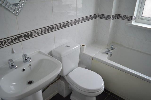 BATHROOM Suite in white comprising of a wash hand basin, low level w/c and panel bath with Triton electric shower over. Integral cupboard with shelving. Mirror. Obscure glazed window overlooking the rear. Vinyl flooring. Fully ceramic tiled walls. Radiator.