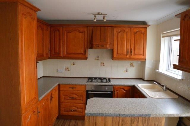 KITCHEN/BREAKFAST ROOM 4.43m x 3m Kitchen area UPVC double glazed window (with blind) overlooking the rear garden with a one and half bowl sink unit beneath. Fitted with a range of base and wall units with matching work surfaces over incorporating a gas hob and oven. Plumbing for appliances. Laminate flooring. Dining area Double panel radiator. Lighting. Plain plastered ceiling and coved. Power points. French doors lead to the conservatory.