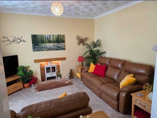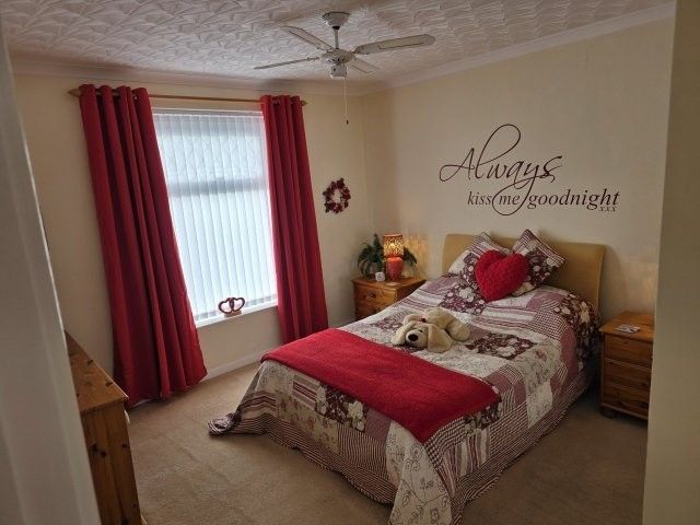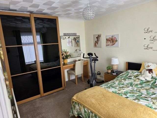 BEDROOM TWO 4.1m x 3.1m Window overlooking the front. Carpet cover. Radiator. Range of power points. Bedroom furniture to stay (if required). Artex ceiling with coving.