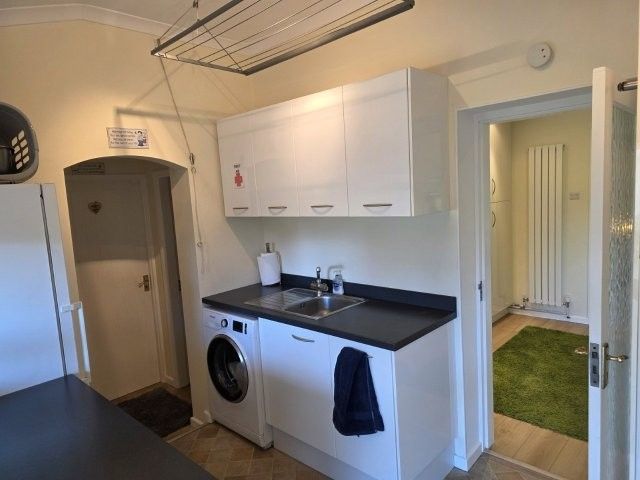 UTILITY ROOM 3m x 2.25m Vinyl flooring. Towel radiator. Stainless steel sink and mixer tap. Fitted utility room with a range of base and wall units. Spotlights. Various level power points. Plumbing for several appliances. Obscure glazed upvc door leading to the rear garden. Door leading to the w/c: