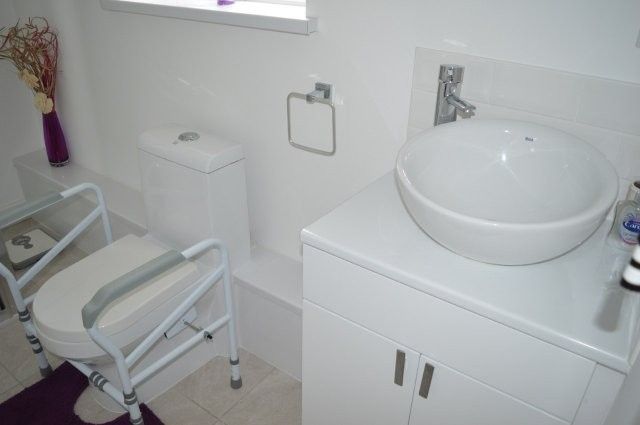 GROUNDFLOOR W/C 1.7m x 0.8m Extractor fan. Vinyl flooring. Wash hand basin with splashback tiled surround. Vanity unit. Low level w/c. Wired for lighting.