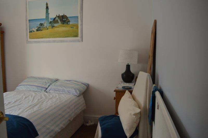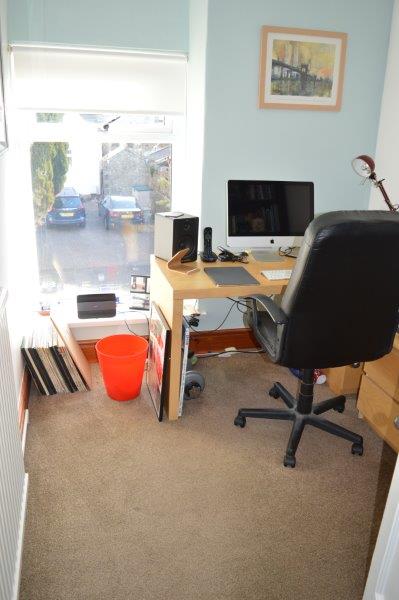 BEDROOM THREE 9' 0" x 7' 1" Window with roller blind and deep sill overlooking the front. Wired for centre light and power points. Double panel radiator to one wall. Carpet cover. Currently used as a study.