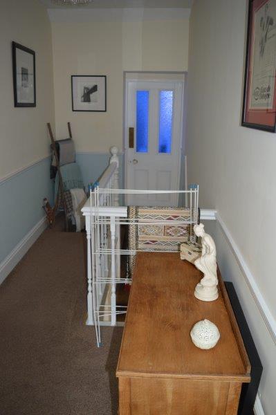 LANDING AREA Spacious landing area. Same run of fitted carpet throughout the first floor. Wired for centre light and power point. Access into the roof space. Plain plastered and coved ceiling. Dado rail. Telephone point.