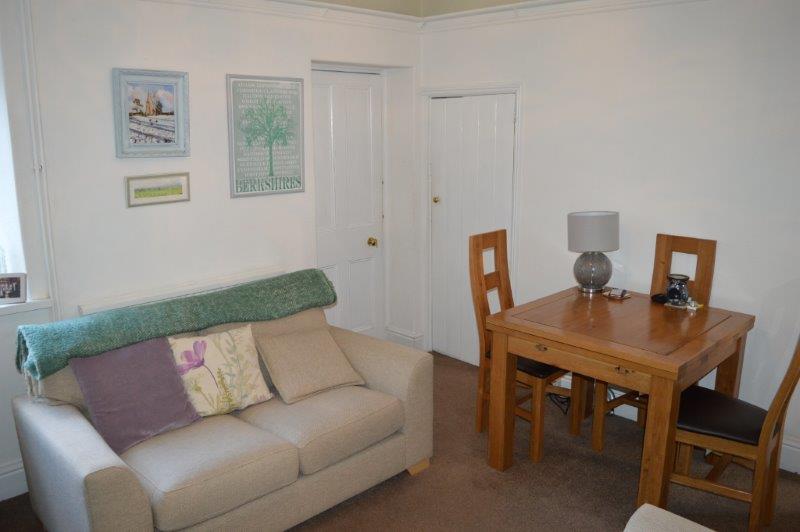 SITTING ROOM 11' 10" x 11' 3" UPVC double glazed window overlooking the front with curtain fixtures and roller blind. Panel radiator. Traditional fireplace with tiled hearth incorporating a multi-fuel wood burner. Side cupboard with gas service meter. Plain plastered and coved ceiling. Wired for centre light and power points. TV point. Carpet cover.