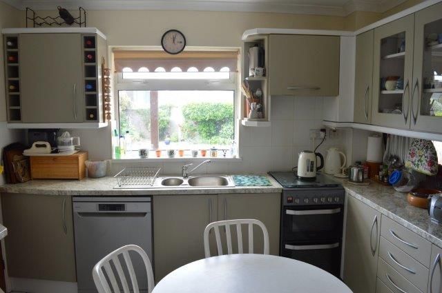 KITCHEN 3.29 x 2.91m Window overlooking the rear.  Modern kitchen fitted with a range of base and wall units with matching work surfaces with a one and a half bowl sink. Plumbing for appliances. Range of power points. Off the kitchen there is a rear hallway with a door leading to the rear garden and a further door leading to the integral garage.