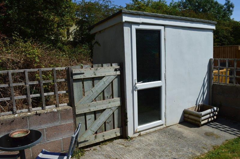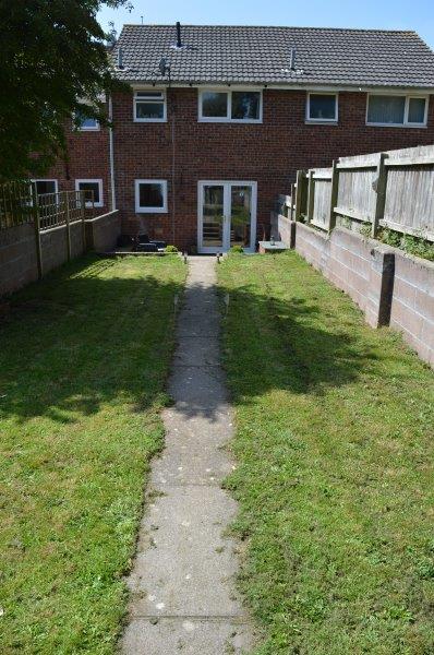 Paved patio area. Lawn area. Border fencing. Rear gate access with a pathway that leads to the garage area. Water laid on. Purpose built garden shed with electricity at the top of the garden.