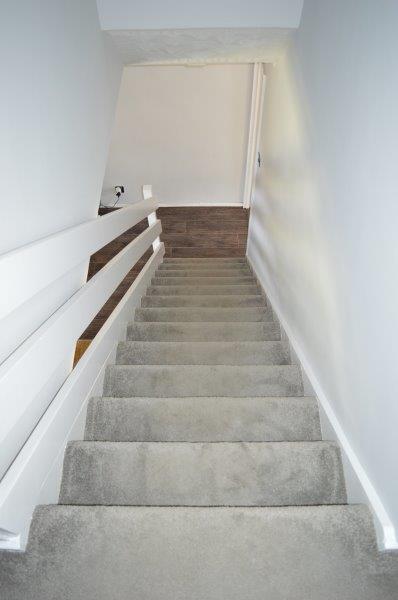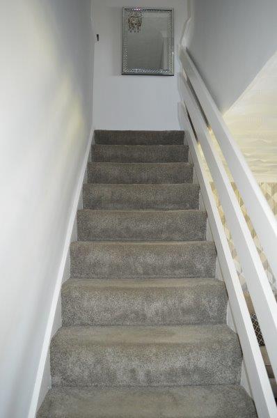 Staircase to first floor with fitted carpet.