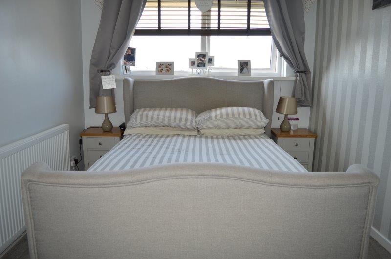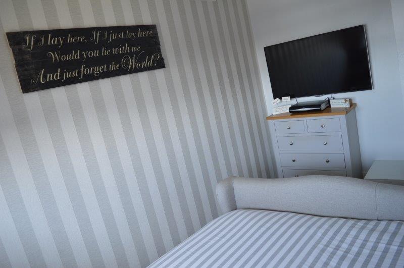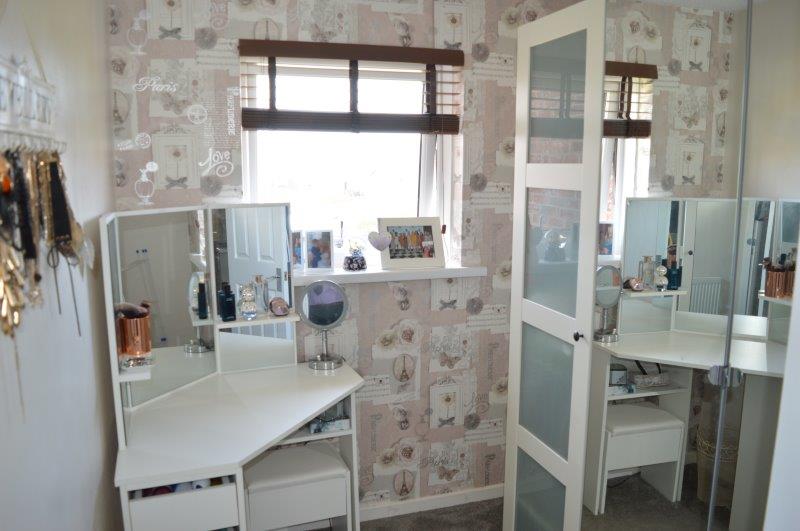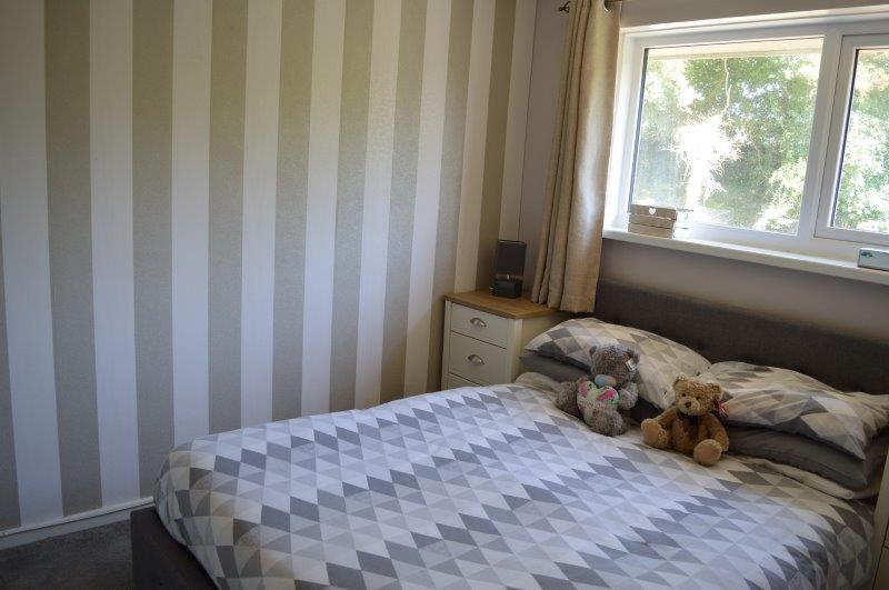 BEDROOM NO 3 2.43m x 1.95m Window with blinds overlooking the front with a single panel radiator. Wired for centre light and power points. Carpet cover. Feature wallpapered wall.