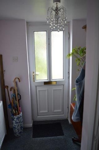 REAR LOBBY Upvc door with obscure glazed inset panel to rear garden. Cloaks rack. Tile effect laminate wood flooring.