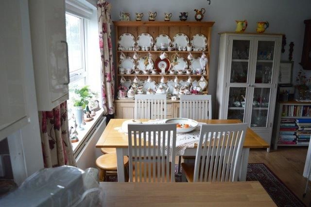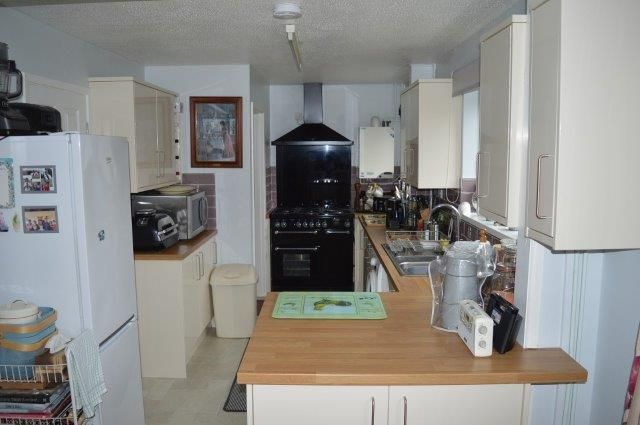 KITCHEN/DINING ROOM 7.30m x 2.75m To the dining area: Upvc glazed window overlooking the rear garden with blinds and double panel radiator beneath. Artex ceiling. Wired for centre light. Laminate wood flooring. Various power points. Carpeted staircase off. To the kitchen area: matching base and wall units with tiled panels. Stainless steel sink with mixer tap. Rangemaster electric double oven cooker with 5 gas hobs. Matching Rangemaster extractor hood and glazed splashback. Two Upvc glazed windows overlooking rear garden, both with blinds. Artex ceiling. Striplight. Dual purpose smoke alarm and carbon monoxide detector. Location of the Ideal boiler that services the central heating and hot water. Plumbing for appliances. Tile effect laminate wood flooring. Access to the purpose built pantry with shelving and light fixture. Door to downstairs cloak/shower room.