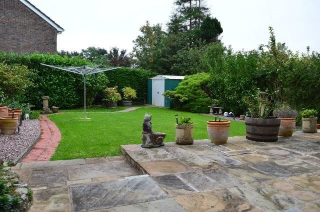 To the rear Primarily laid to lawn with a raised patio area. Outside light. Bordered by mature shrubs and plants. Pathway leads to the shed which is situated on a hard standing. Water laid on. Gate leading to the front of the property. Additional external security lights to rear and side of the house.
