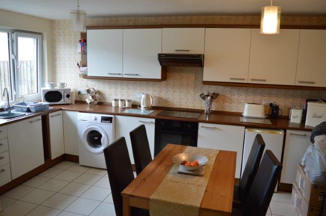 KITCHEN/DINING ROOM 16’.0” x 10’.0” (4.88m x 3.05m) Range of base and wall units with matching work surfaces over. Window overlooking the rear. Wired for centre lights. Incorporated in the base units is a single sink unit with mixer taps. The wall mounted gas combination boiler serves the central heating system and is enclosed in a cupboard. Generous under stairs storage cupboard. Plumbing for appliances. Tiled flooring. Radiator to one wall.