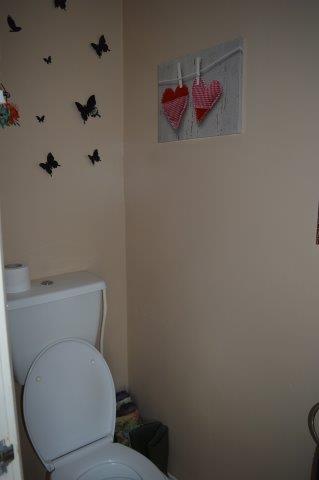 CLOAKROOM Fitted with a WC and wash-hand basin with ceramic tile surround. Wired for light. Tiled flooring.