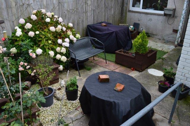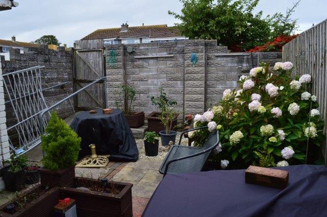 To the rear Patio paved area. Bounded by border fencing. Timber gate giving rear access to vehicle parking.