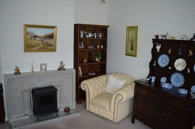 LOUNGE 4.2m x 3.5m Bay window overlooking the front. Coved and plain plastered ceiling. Wired for light and power points. Fireplace with hearth and gas fire which is independent to the central heating system. Double panel radiator to one wall. TV point. Carpet cover.