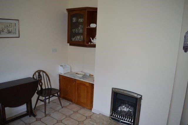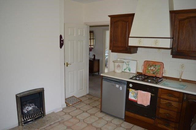 KITCHEN/BREAKFAST ROOM 3.56m x 3.56m Window with opening transoms overlooking the rear garden. Half glazed side door to the conservatory. Double bowl sink with mixer taps over. Range of base and wall units with work surfaces over and splash back tiled surround. Incorporated in the units is a four-gas ring hob and oven with extractor hood over. Plain plastered ceiling. Wired for light and power points. Plumbing for appliances. Location of the central heating thermostat. Fireplace incorporating a background gas fire, currently disconnected. Ceramic tiled flooring.