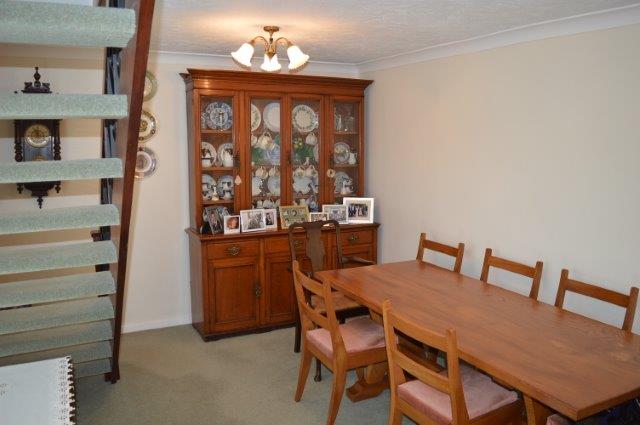 DINING ROOM 6.5 x 5.4m Twin lighting. Carpet cover. Coved and combed, artex ceiling. Fifteen panel glazed Georgian style internal doors lead to kitchen, reception hall and lounge. Double panel radiator with cover. Power