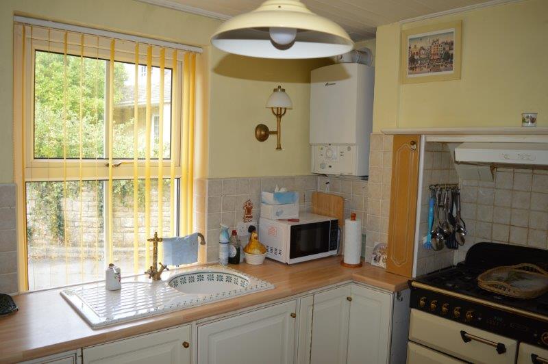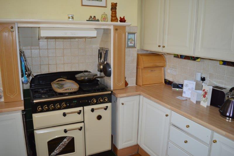 KITCHEN/BREAKFAST ROOM 9’7” x 7’6” Window overlooking the front with single drainer sink beneath. Panel radiator to one wall. Range of base and wall units with matching work surfaces over and ceramic tiled surround. Timber ceiling. Wired for ceiling lights, wall, lights, power points and extractor fan. Aga style cooker and gas hob. Location of the Worcester gas fired boiler which serves the central heating system. Polished block wood floor.