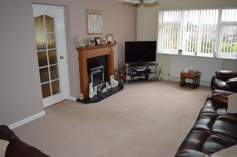 LOUNGE 5.90m x 3.75m Window overlooking the rear with sills and vertical blinds. Double panel radiators beneath. Coved and artex ceiling. Wired for centre light, wall lights and power points. TV point. Further double panel radiator to one wall. Modern Adam style fireplace with marble hearth containing a gas fire independent of the gas fired central heating system. Carpet cover.
