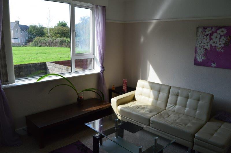 LIVING ROOM 15’ 3” X 12’ 6” Window overlooking the front with vertical blinds. Double panel radiator with individual thermostat to one wall. Wired for centre light and power points. TV point. Original picture rail remains. Tiled fireplace and hearth incorporating an electric fire. Carpet cover.