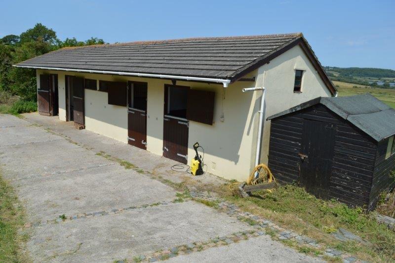 To the rear – Garden laid to lawn with various patio areas. Elevated views of the eight acres of pasture land. Modern stable block for four horses. Water laid on.