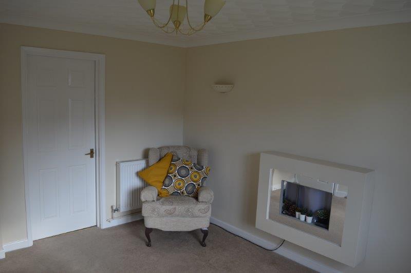 LIVING ROOM 3.96m x 3.01m (13’ 1” x 9’ 11”) Window overlooking the front. Coved and artex ceiling. Wired for centre light, two wall lights and power points. Panel radiator to one wall. Feature wall hung electric box fireplace to main wall. T V point. Carpet cover.