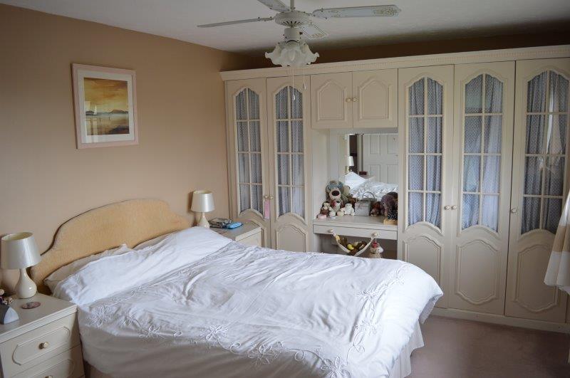 ENSUITE 4.39m x 3.20m Window overlooking the rear and panel radiator beneath. Wired for centre light and power points. Telephone point. TV point. Built in wardrobes with glazed doors, vanity unit and cupboard over. Carpet cover. Ensuite: Obscure glazed window overlooking the rear. Single panel radiator. Wired for light, shaver point and extractor fan. Modern suite in white comprising shower cubicle, wash-hand basin and WC. Vanity unit. Ceramic tiled walls to shower. Vinyl flooring.