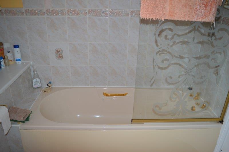 FAMILY BATHROOM 4.0m x 2.2m Obscure glazed window overlooking the side. Wired for light and shaver point. Suite comprising of a panelled bath with screen and Triton shower over, twin wash-hand basin with vanity unit beneath, bidet and W/C. Full ceramic tiled walls to shower area. Half wall ceramic tiles to rest. Extractor fan. Vinyl flooring.