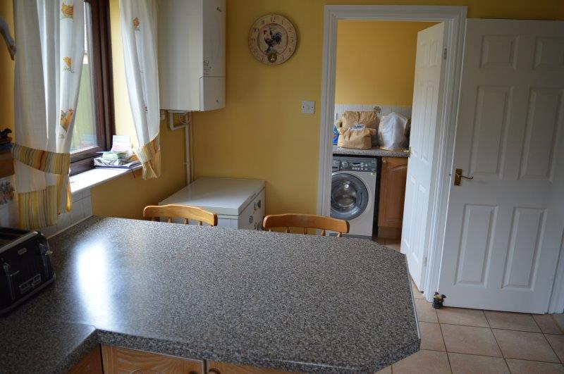 UTILITY ROOM Window and half glazed door to the side. Double panel radiator with individual thermostat. . Range of base units with matching work surfaces over and ceramic tiled surround. Wired for light and power points. Plumbing for appliances. Ceramic tiled floor.