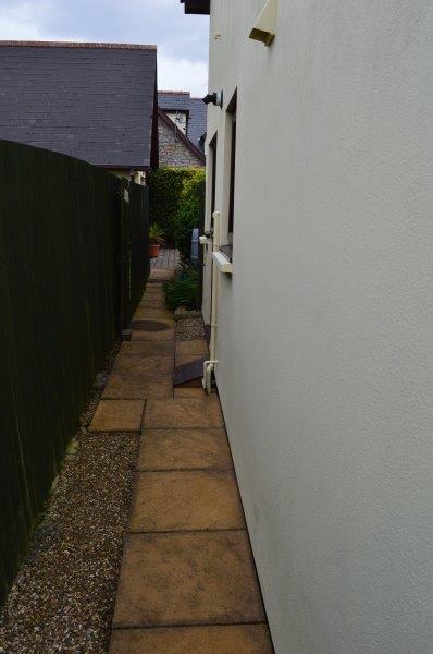 To the side – Landscaped with paved access to the rear. External water tap on side of house.